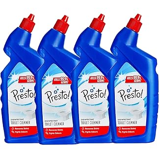 Amazon Brand – Presto! Disinfectant Toilet Cleaner, Original | 4 Litre | 1 L X 4 Packs | Kills 99.9% Germs | Removes Tough Stains | Provides Long Lasting Freshness