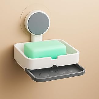JIALTO Plastic Wall Mounted Soap Holder for Bathroom, Non-Drill Wall Mount Magic Sticker Self Adhesive Soap Stand for Bathroom with Removable Drain Tray NO.1348 Traceless Single Drawer Soap Box – 5 kg