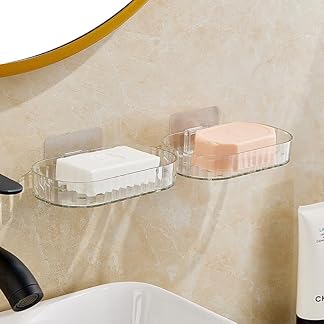 SR soap Holder for Bathroom/soap case/self-Adhesive soap Holder/soap Stand for Bathroom/Self Draining Transparent Acrylic Soap Dish Holder Drill- Free (Pack of 2)