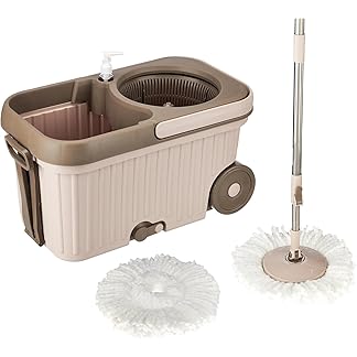 Presto! Elite Spin Mop with Bigger Wheels and Auto- Fold Handle, Chestnut, 2 Refills, Stainless Steel, Microfiber,Chestnut