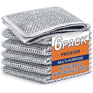 PROXISM Non-Scratch Dish Wash Cloth (Pack of 6), Steel Wire Dish Cloth, Wire Dishwashing Rags for Wet and Dry Stainless Steel Scrubber Non-Scratch Wire Dishcloth for Washing DishesfkouCLO (6)