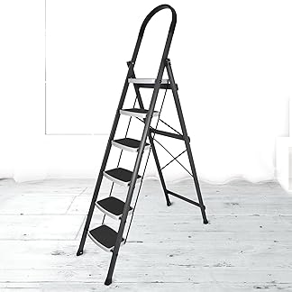 Plantex 6 Step Ladder -Foldable Steel 6 Step Ladder-Wide Anti Skid Steps-Made in India(Grey & White)