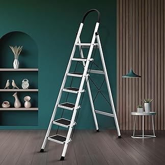 Plantex Steel Ladder for Home/Strong Foldable Wide 7 Step Ladder/Anti-Skid 7 Step Ladder – (Apex – White)