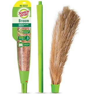 Scotch-Brite No-Dust Broom with Long Handle | Flat Fiber Jhadu for Fine Dust & Hair | Reaches All Corners | Multipurpose Floor, Cobweb & Ceiling Cleaner | No Back Strain