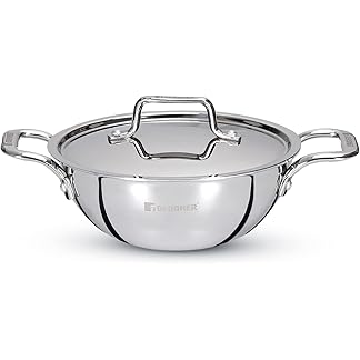 BERGNER TriPro TriPly Stainless Steel 24 cm Kadai with Stainless Steel Lid, 3.1 L Kadhai, Metal Spatula Friendly, Easy to Clean, Induction Bottom and Gas Stove Ready, 5-Year Warranty