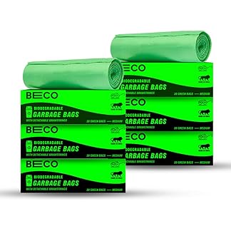 Beco Eco-Friendly Garbage Bags | 180 Pcs | Medium-19 x 21 Inches | 30 Bags x 6 Rolls | Green | Dustbin/Trash Bags with Detachable Drawstrings | For Dry & Wet waste