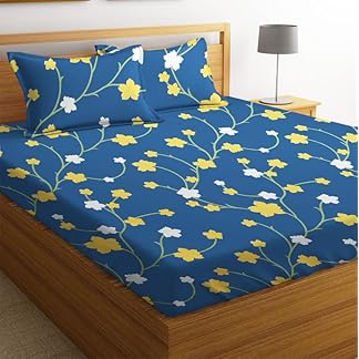 BSB HOME 100% Microfiber bedsheet for Double Bed with 2 Pillow Covers Breathable | Wrinklefree and Softtouch Floral Print Sheet- White Yellow & Blue