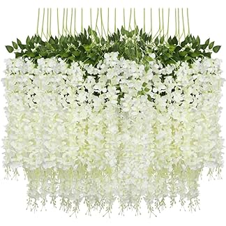 VRB Dec Pack of 6 (43.2Ft) Artificial Wisteria Vine| Ratta Fake Wisteria Hanging | Garland Silk Long Hanging Bush Flowers String for Home Party Wedding Decor (White, 6)