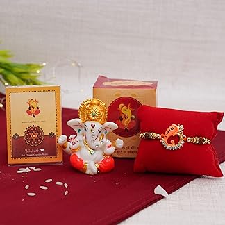 TIED RIBBONS Designer Rakhi for Brother -Premium Ganesha Figurine Rakhi Gifts for Brother, Resin, Multicolour, Standard