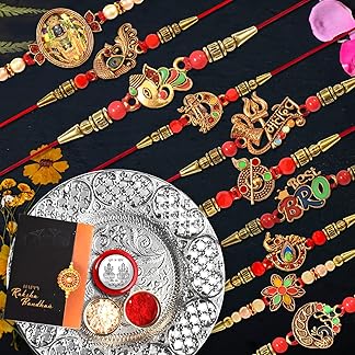 Oblivion Rakhi for Brother Set of 10 with Dish, Silver Coin & Greeting Card, Rakhi for Brother and Bhabhi, Rakhi with Gift for Brother, Rakhi for Kids, Rakhi Set, Rakhi Combo (K10_MC56_DS)