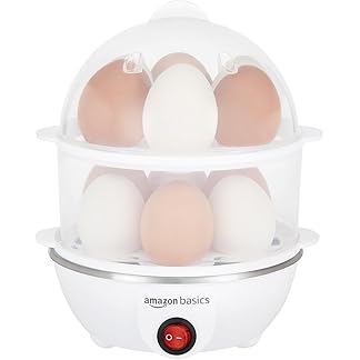 amazon basics Double Decker Plastic Egg Boiler | Stainless Steel Heating Plate | Measuring Cup | Compact | Dishwasher Safe, 500 ml