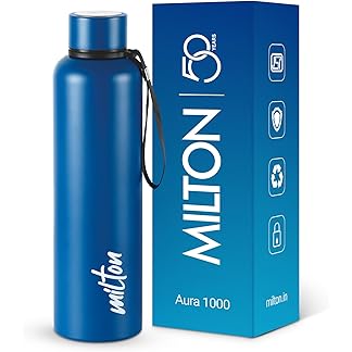 Milton Aura 1000 Thermosteel Water Bottle, 24 Hr Hot and Cold I Leak Proof Lid, ISI Certified I Vacuum Insulated I for Office, Gym, School I Dark Blue