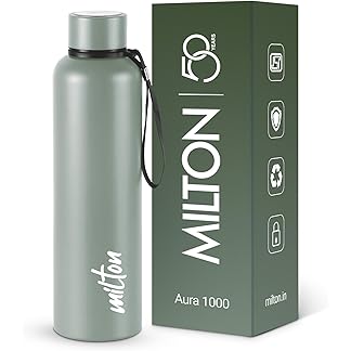 Milton Aura 1000 Thermosteel Water Bottle, 24 Hr Hot and Cold I Leak Proof Lid, ISI Certified I Vacuum Insulated I for Office, Gym, School I Grey