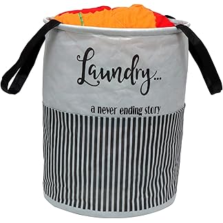 Perpetual Cloth Basket For Laundry – Waterproof Non Woven Cloth Bag For Storage Clothes, Flodable Laundry Basket Bag With Handle 45 Liter(Polka), White, 15 Cm, 30 Cm