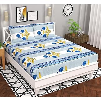 BSB HOME Microfiber 144 TC Aspire 2.O Collections Soft Breathable Wrinklefree Floral Printed Double Bedsheets with 2 Regular Size Pillow Covers, Color White & Blue Rose