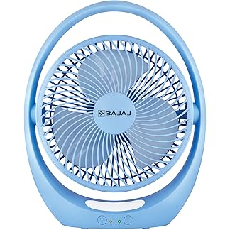 Bajaj Pygmy Go 178MM Mini Fan with LED Lighting | Rechargeable | USB Charging | 4-hours Battery Backup | 3 Speed | 2-Light Brightness Setting | High Speed | Portable【Blue】