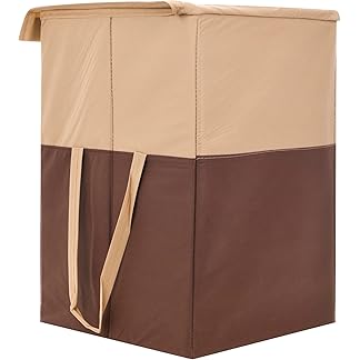 Perpetual Cloth Basket For Laundry – Waterproof Non Woven Cloth Bag For Storage Clothes, Flodable Laundry Basket Bag With Lid And Handle 75 Liter(BrownBIG)