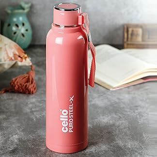 Cello Puro Steel-X Benz 900 | Leak Proof| Wide Mouth & Easy to Open | Insulated Inner Steel Outer Plastic Water Bottle | 730ml | Peach