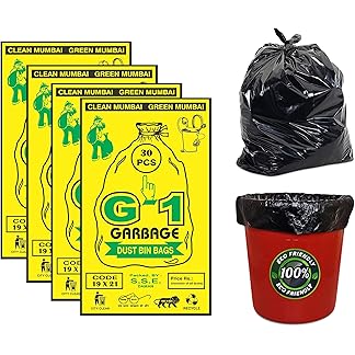 G1 Garbage Bags | Dustbin Bags | Medium | Black | 19 X 21 Inch | 4 Packs Of 30 pcs 120 pcs