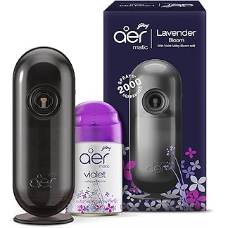 Godrej aer Matic Kit (Machine + 1 Refill) – Automatic Room Fresheners with Flexi Control Spray | Lavender Bloom | 2200 Sprays Guaranteed | Lasts up to 60 days (210ml)