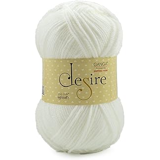 Ganga Acrowools Acrylic Desire Hand Knitting and Crochet Yarn. Pack of 1 Ball – 100Gms. Shade No – Dsr007, White