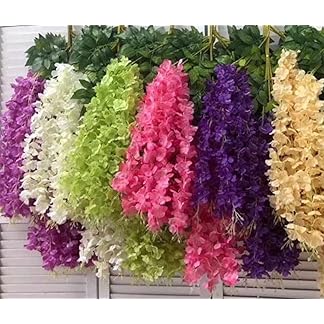 VRB Dec Pack of 6 (43.2Ft) Artificial Wisteria Vine| Ratta Fake Wisteria Hanging | Garland Silk Long Hanging Bush Flowers String for Home Party Wedding Decor (Multicolor, 6)