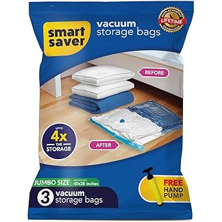 Smart Saver 3 Jumbo Vacuum Bags For Travel, Spacesaver Compression Storage Bags, Vacuum Sealer Bags, Vaccine Sealed Compression Airtight Reusable Ziplock Bag With Hand Pump(70X100Cm, Plastic) – Blue