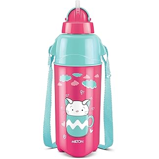 Milton Kool Trendy 500 Kids Plastic Insulated Water Bottle with Straw, 490 ml, Sipper Bottle, Leak Proof, BPA Free, Food Grade, School & Picnic Bottle, Cherry Pink