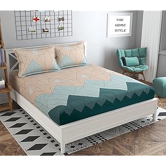 THE HOME STYLE Cotton Feel Glace Cotton Elastic Fitted Printed King Size Double Bed Bedsheet with 2 Pillow Cover(72″x78″, Pastel Green) , 300 – 350 threadcount