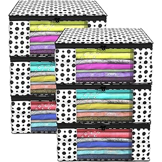 Kuber Industries Clothes Organizer For Wardrobe (Pack of 6) – Storage Organizer For Saree | Shirts | Salwar Suit – Dress Organizer For Wardrobe – Saree Covers With Zip (Polka Dots) (Black and White)