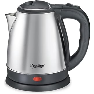 Prestige 1.5 Litres Electric Kettle (PKOSS 1.5)|1350W | Silver – Black| Automatic Cut-off | Stainless Steel | Rotatable Base | Power Indicator | Single-Touch Lid Locking