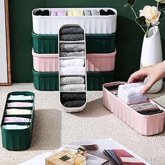 XMART INDIA Drawer Organizers for Underwear, Socks, Bras, Ties, Undergarments, and Scarves – Closet Storage Dividers for Household Use Wardrobe Storage Box Set of 4 (Multicolor), Plastic