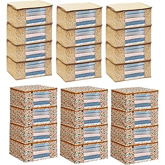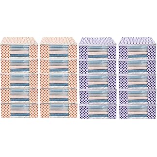 Saree Covers With Zip Non Woven Fabric/Wardrobe Organizer for Clothes/Cloth Storage Bags/Large Size Transparent Window Clothing Storing Bag/Combo Pack Garments Cover/ (Blue/Orange) Set of 24