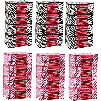 Saree Covers With Zip Non Woven Fabric/Wardrobe Organizer for Clothes/Cloth Storage Bags/Large Size Transparent Window Clothing Storing Bag/Combo Pack Garments Cover/ (Black/Pink) Set of 24