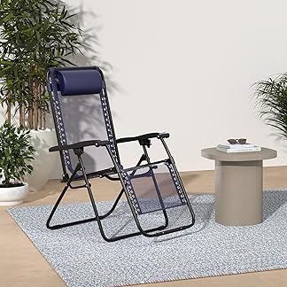 Amazon Basics Outdoor Textilene Adjustable Zero Gravity Folding Reclining Lounge Chair with Pillow (Blue) | Alloy Steel