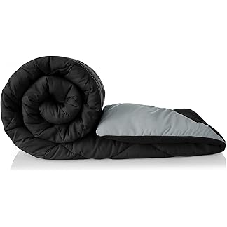 HOMEKART 220 GSM Solid Plain Reversible Summer Microfiber AC Comforter/Duvet| All Season Single Size 3 Layered Quilted Blanket for Single Bed (220 cm x 152 cm, Black and Grey)