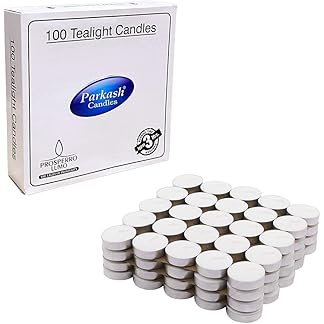 Amazon Brand – Solimo Wax Tealight Candles, 3-Hour Burn Time, Smokeless, No Residue (Set of 100, Unscented)