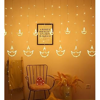 The Purple Tree Decorative Diya Diwali Light Curtain, String Lights with 12 Hanging Diyas, 8 Flashing Modes – 2.5 Meter (1 Curtain) 138 Led, Diwali Decorative Light