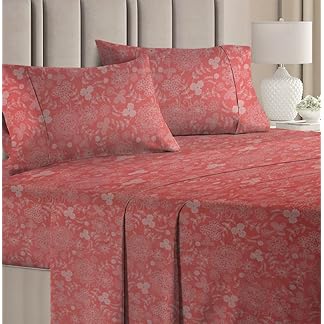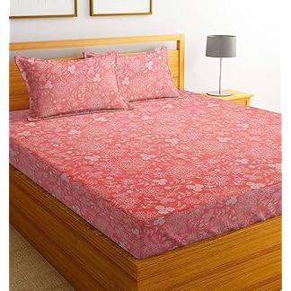 BSB HOME Aspire Collections 100% Microfiber Feel Double/Queen Size Bedsheets with 2 Pillow Covers Cotton, 150tc Floral Pink Bedsheets for Double Bed Microfiber (7ft X 7ft)