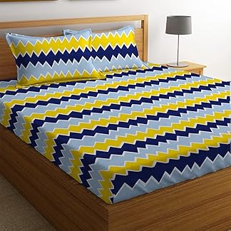 BSB HOME 100% Microfiber bedsheet for Double Bed with 2 Pillow Covers Breathable | Wrinklefree and Softtouch Zig-zag Print Sheet- Yellow & Blue
