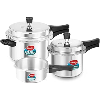 Pigeon By Stovekraft Special Aluminium Pressure Cooker Combo with Outer Lid Gas Stove Compatible 2, 3, 5 Litre Capacity for Healthy Cooking (Silver)