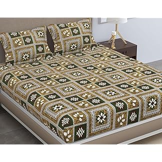 Amazon Brand – Solimo Super Soft Polyester Double Bedsheet with 2 Pillow Covers | 95 GSM (Pista Green Brown), 144 TC