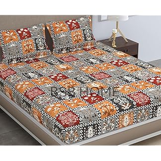 BSB HOME Pure Microfiber Jaipuri Rajasthani Print Bedsheet for Double with 2 Pillow Covers 144tc Breathable Wrinklfree Color – Grey & Red