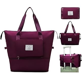 Travel Bags 41 Liter Expandable for Women,Duffle Bags with Wheels and Handle for Women Luggage,Foldable Vanity Traveling Companion Hand Bag for Ladies Personal Items Large Weekend (Wine)