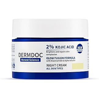 DERMDOC 2% Kojic Acid Glow Fusion Formula Night Cream with Niacinamide & Alpha Arbutin for Skin Brightening (50 gm) | Face Cream I Night Cream I Kojic Acid Brightening Cream I Glowing Skin