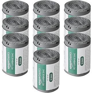 AmazonBasics Pet Poop Bags with Fun Paw Print Design | Strong, Leak-Proof | Easy to Use | Unscented | 300 Bags (30 Bags x 10 Rolls)