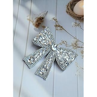 RHOSYN HAIR ACCESSORIES Embellished Hair Bow Clips for Women | Stone Crystal Hair Bow Clips | Hair Bow Barrette Clip | Fancy Hair Clips | Stylish Bow Hair Clips for Girls (Golden Color Pack-1) Cpy12 (Silver1)