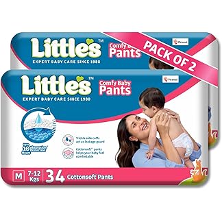 Little’s Baby Diapers M Size (Medium) Pants Style | 7-12 kg | 68 Count – Pack of 2 | Cotton Soft Baby Diaper Pants with Leakage Guard