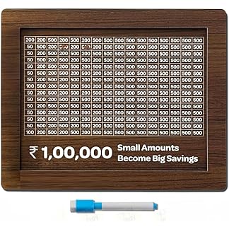 Perpetual Wooden Money Piggy Bank, Money Saving Box, Gullak with Savings Chart, 100000 Rupees Goal Tracker, Cash Collection Bank for Kids and Adults(1Pc)
