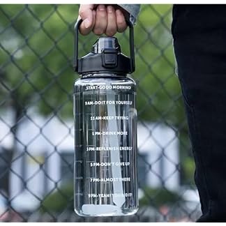 VISBY INDIA 2 L Capacity Belt Straw Transparent Motivational Water Bottles|Time Marker Leak Proof&Break-Proof|Best Usage For Office/School/Gym/Travel Bottle|Bpa-Free Fitness Sports Bottle (Black)